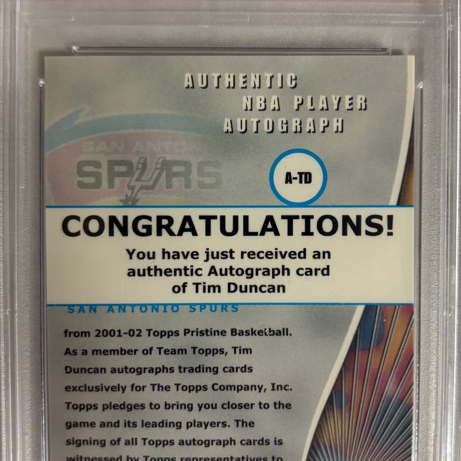 2001 Topps Pristine Autograph Tim Duncan card #A-TD, graded PSA 9